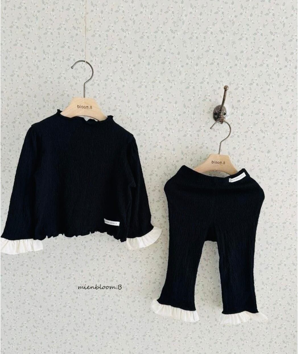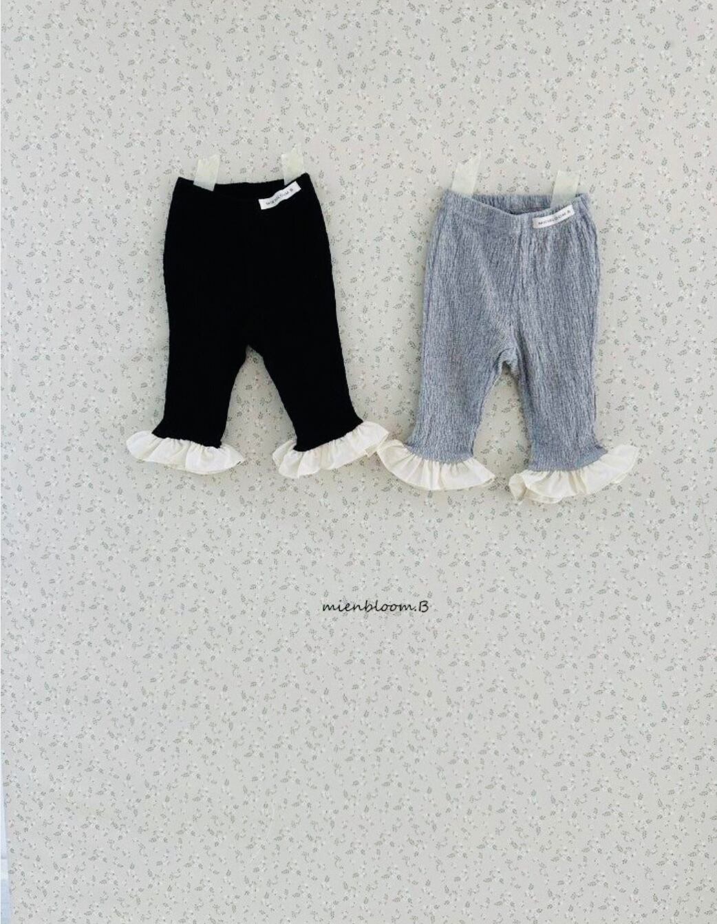 シンプルなレギンスパンツに、愛らしいフリルをプラス。