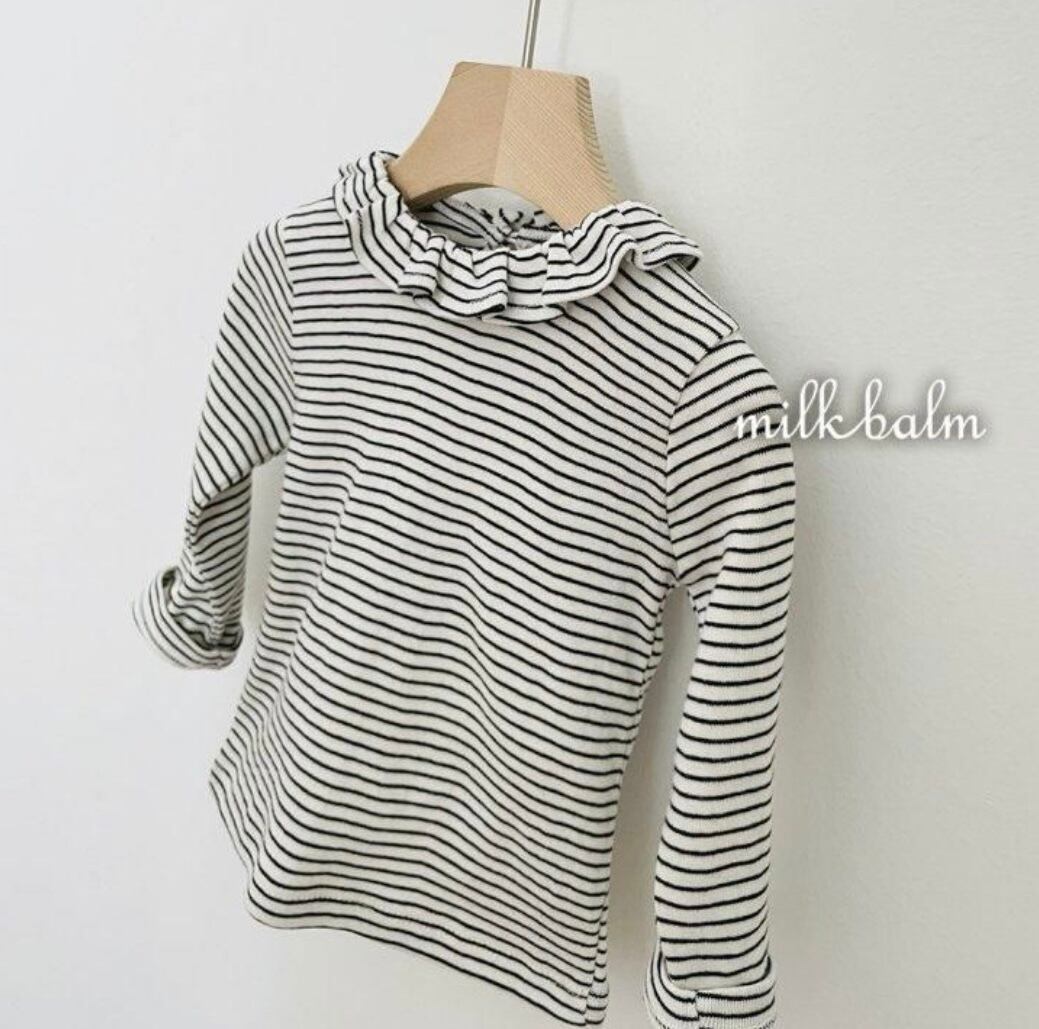 ボーダー柄に、愛らしいフリル襟をプラスしたカットソー。