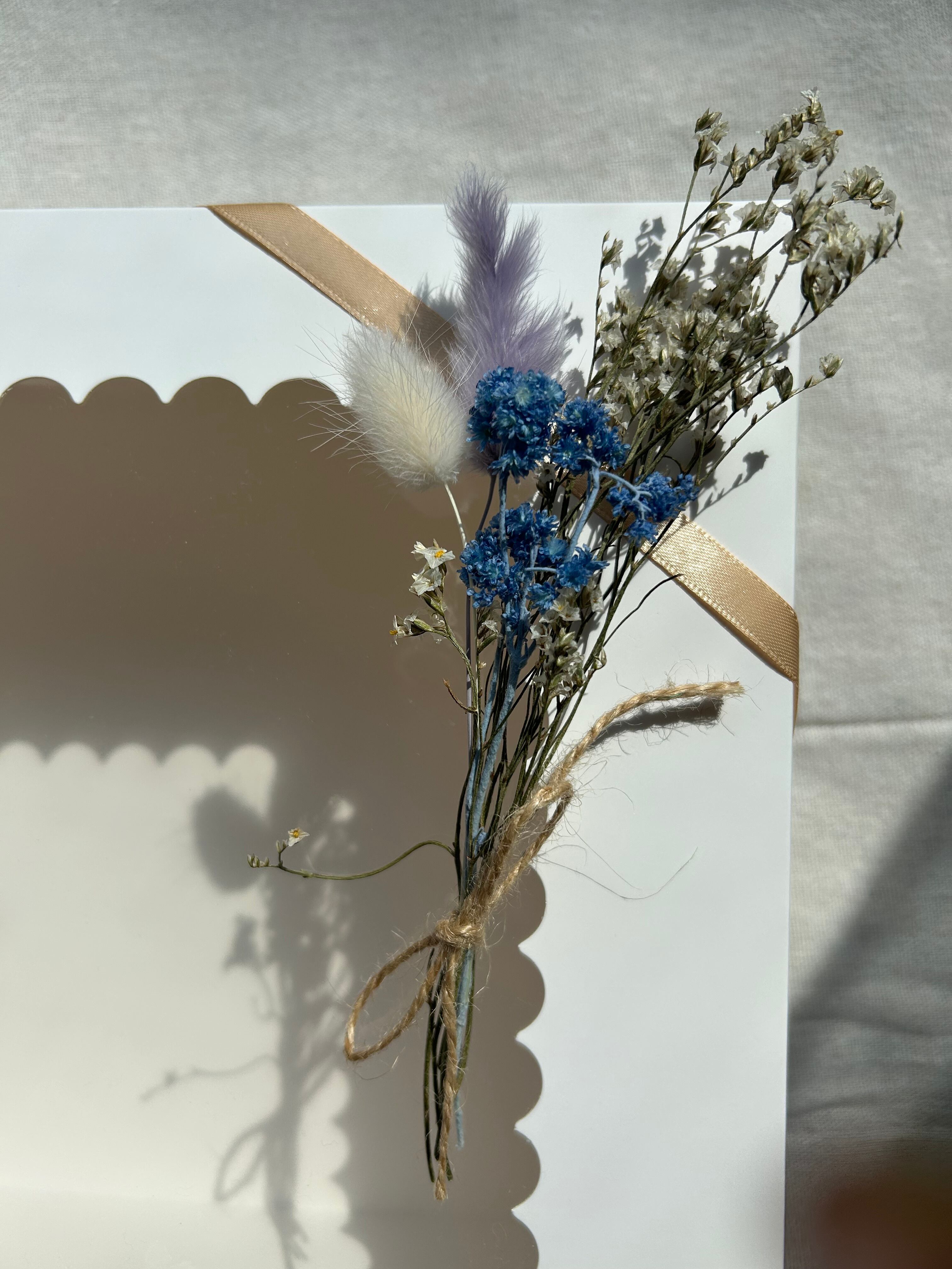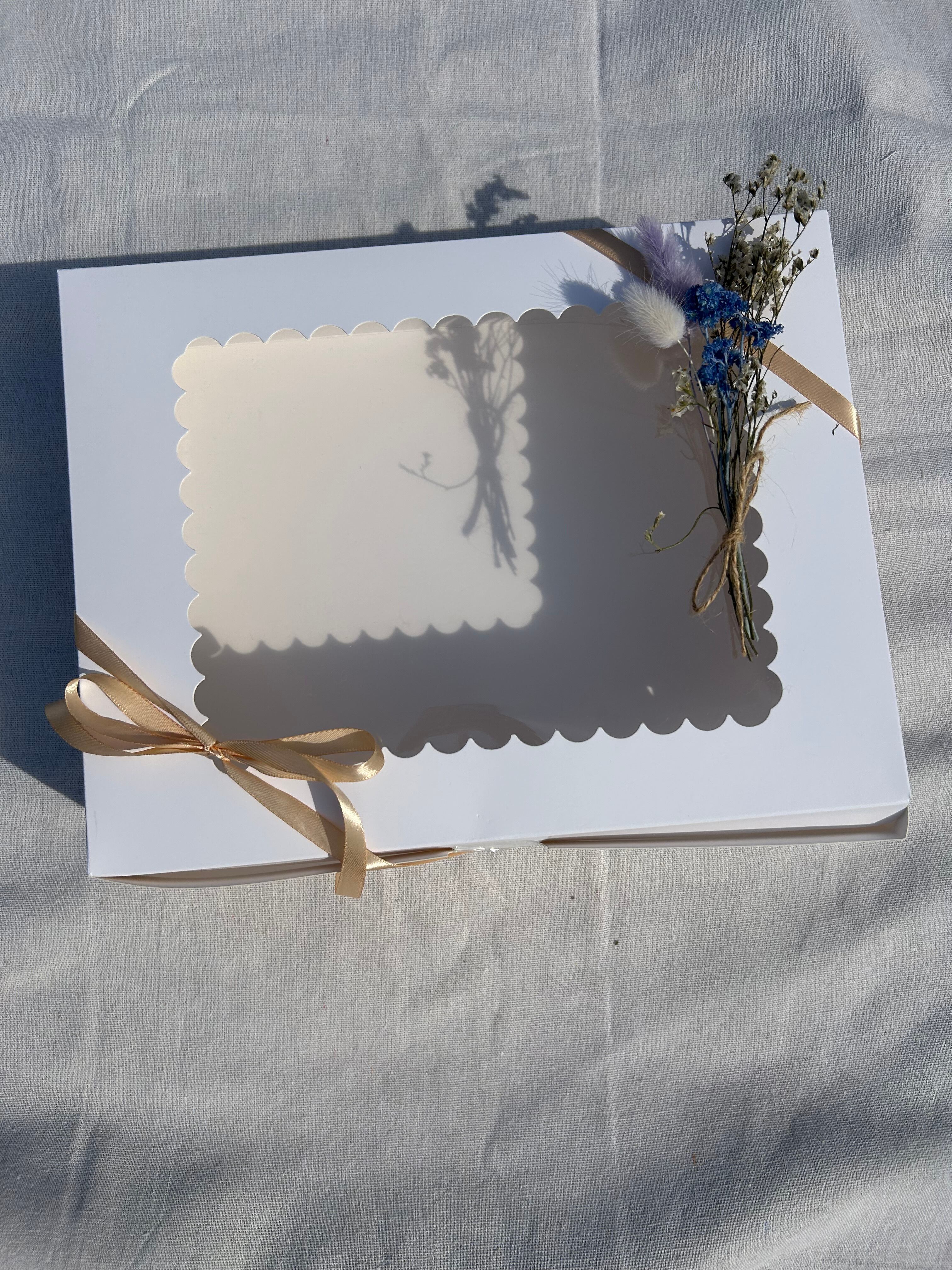 ナチュラルで上品な雰囲気のドライフラワーブーケがアクセントになったギフトボックス。