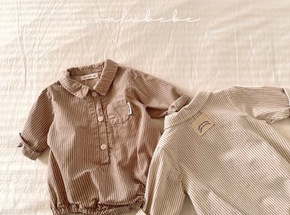 ナチュラルストライプ襟付きロンパース