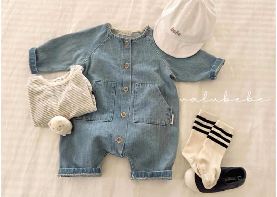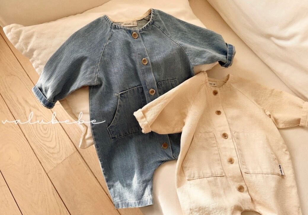 デニム風と生成りカラーの2色展開で、どちらも赤ちゃんのやさしい雰囲気を引き立ててくれます。